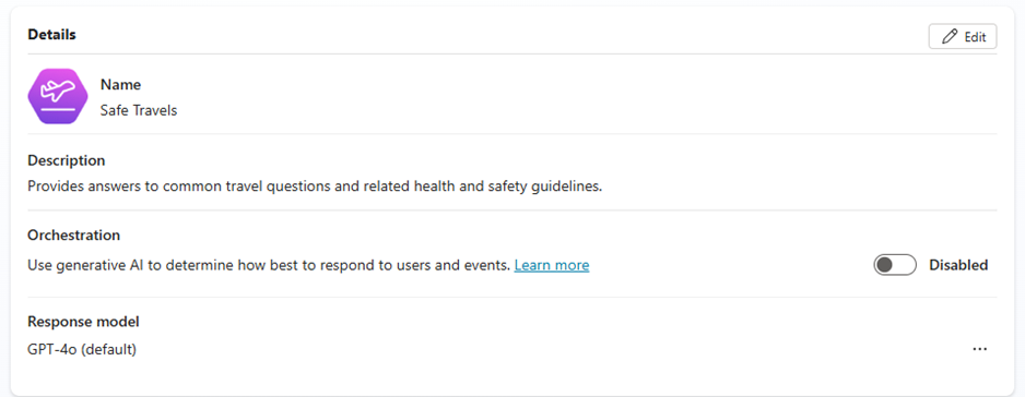 - Orchestration – The option to enable AI-driven orchestration ensures that the assistant chooses the best possible responses based on user queries.