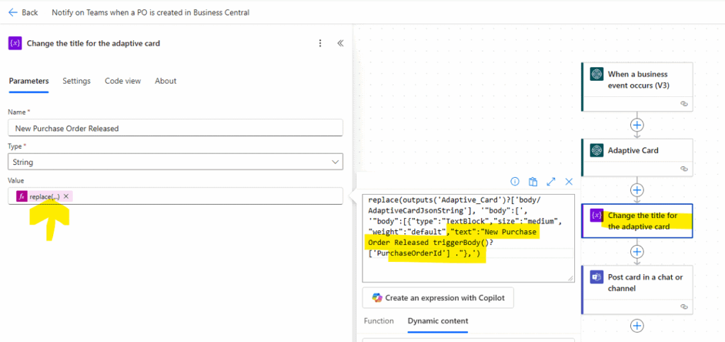 Step 3: Set the Adaptive Card Title