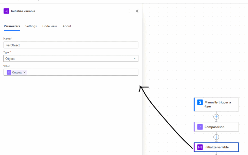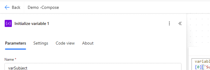 We can also pass compose value in variable; here I am using ‘varObject’ to store compose output value –
