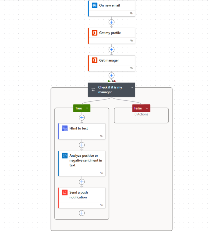 This Power Automate flow intelligently monitors your inbox, checks if an incoming email is from your manager, and instantly analyzes its tone using AI sentiment analysis. By converting the email body to plain text, the flow ensures accurate sentiment detection (positive, neutral, or negative) and sends you a real-time push notification with the results. This automation helps you prioritize important emails, understand their tone at a glance, and respond quickly and appropriately. This is the flow we are going to create step by step.
