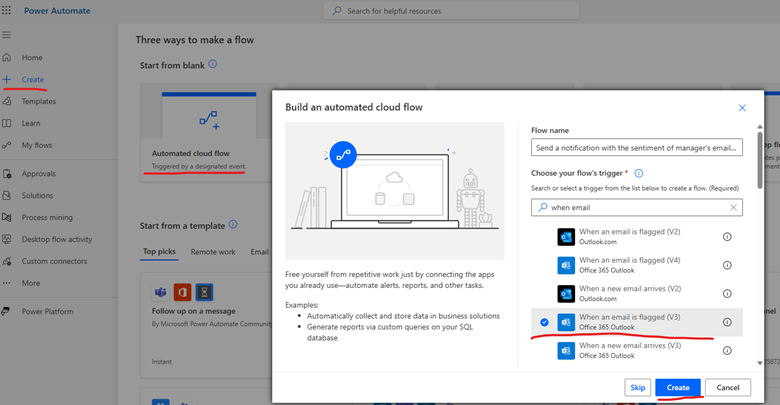- Click on Create > Automated cloud flow.