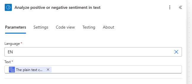 - Choose “Analyze positive or negative sentiment in text”.