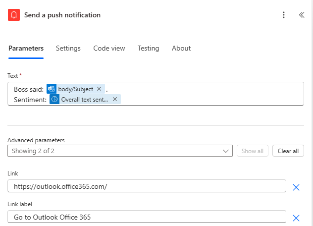 Sentiment: @{outputs(‘Analyze_positive_or_negative_sentiment_in_text’)?[‘prediction’]}