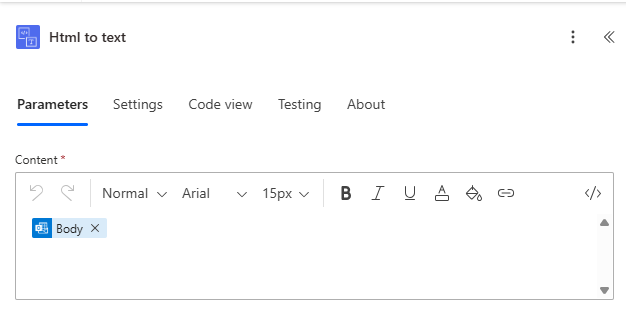 - In the True branch, add the action “Html to text” (Data Operations).