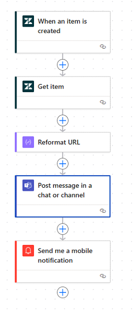 In this flow, we used Power Automate to build a full Zendesk-to-Teams notification pipeline: