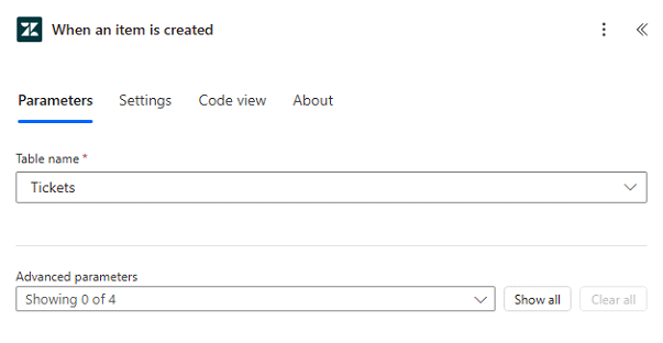 This is the starting point of our flow. We selected the Tickets table from Zendesk. Whenever a new ticket is created, the flow will trigger automatically.